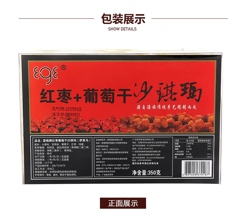 壹格牌紅(hóng)棗葡萄沙琪瑪-350g