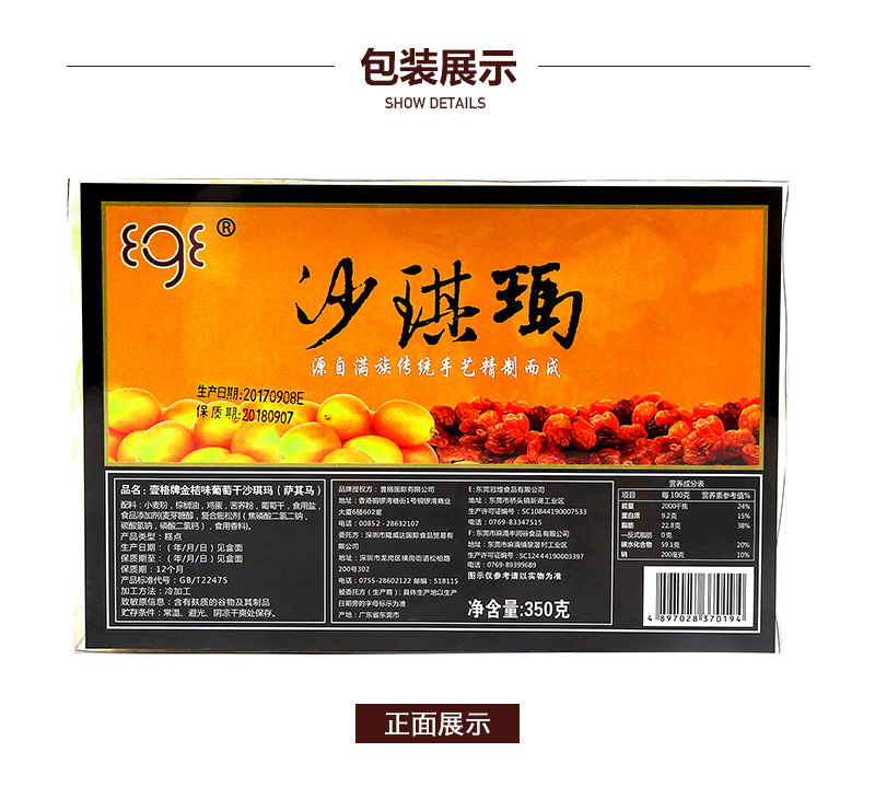 壹格牌金(jīn)桔味葡萄幹沙琪瑪-350g