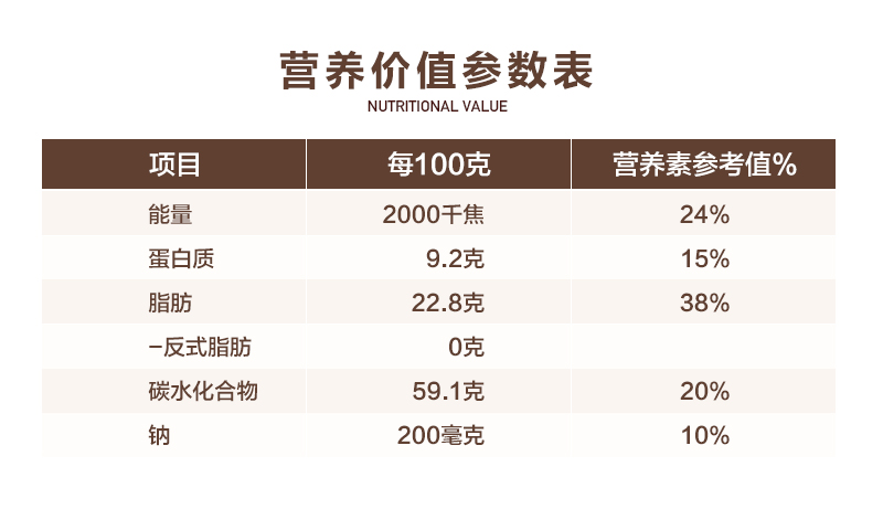 小(xiǎo)麥粉、棕榈油、雞蛋、苦荞粉、葡萄幹、食β↓用(yòng)鹽、食品添加劑{麥芽糖醇,複合膨松劑(焦磷酸二氫二鈉ε₽,碳酸氫鈉,磷酸二氫鈣),食用(yòng)香料}